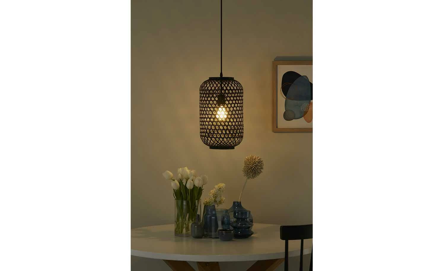 HOME STORY Pendelleuchte, 1-flammig, Bambusgeflecht schwarz