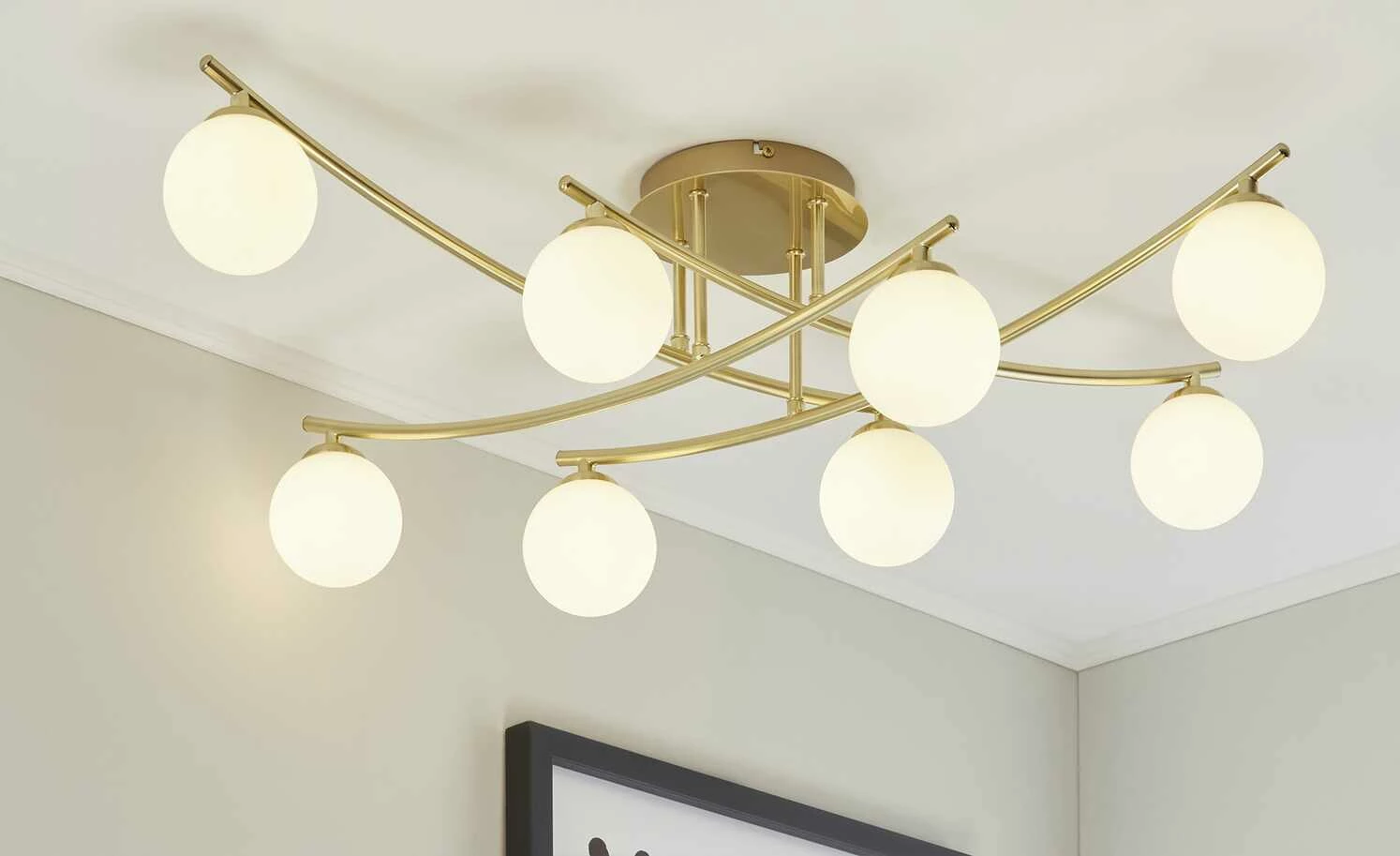 KHG Deckenleuchte, 8-flammig, Messing mit Glaskugeln