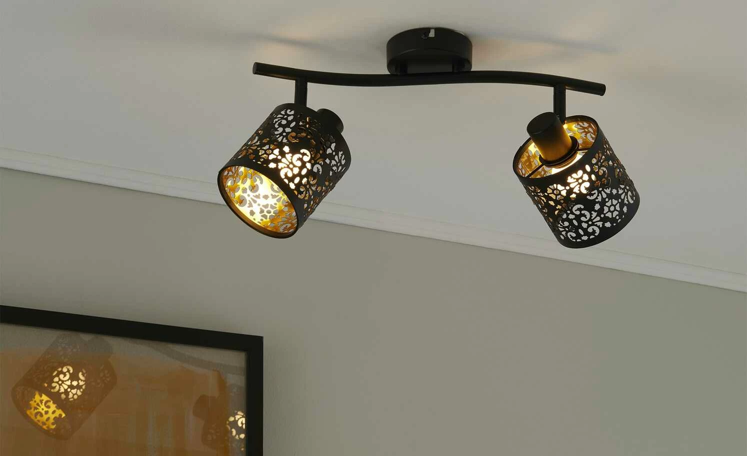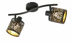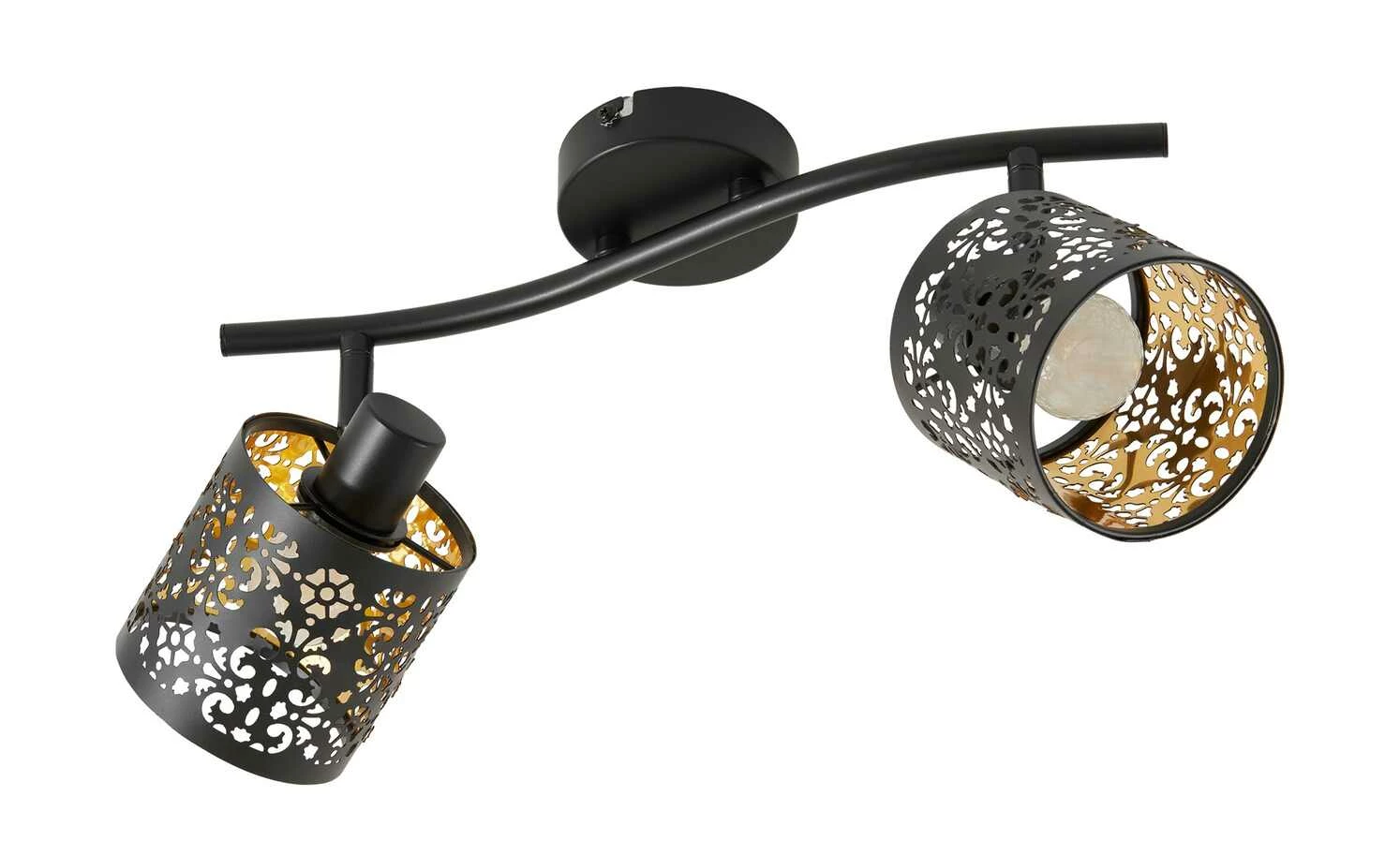 KHG Deckenstrahler, 2-flammig, schwarz/gold mit Stanzung