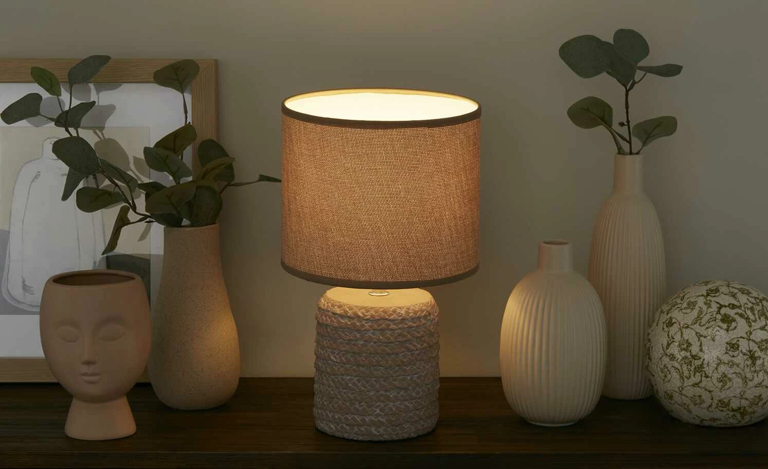 KHG Keramik-Tischleuchte, 1-flammig, Seil natur/blau