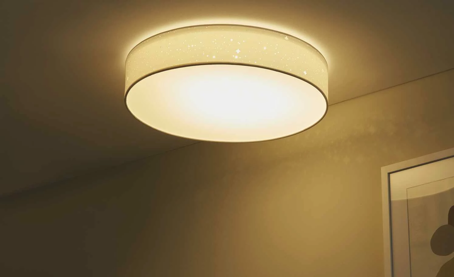 KHG Smart-Home Deckenleuchte, Stoffschirm weiß mit Stanzung