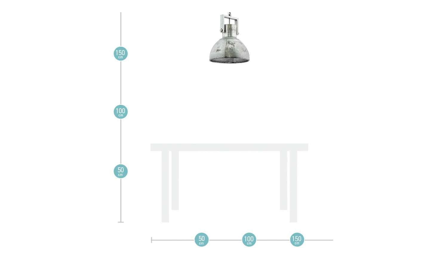 Diese Pendelleuchte überzeugt mit einem besonderen Used-Look. Die aus Eisen gefertigte Leuchte wird ohne Leuchtmittel geliefert, sodass Sie die Möglichkeit haben, die Leuchte mit einem E27-Leuchtmittel bis max. 25 Watt zu bestücken. Kombinieren Sie die Leuchte mit einem Vintage-Leuchtmittel ganz nach Ihrem Geschmack. Durch das rustikale Aussehen wird die Leuchte garantiert zu einem echten Hingucker. Die Leuchte hat einen Durchmesser von 40,0 cm und eine Abhängung von 120,0 cm.