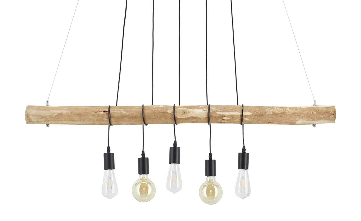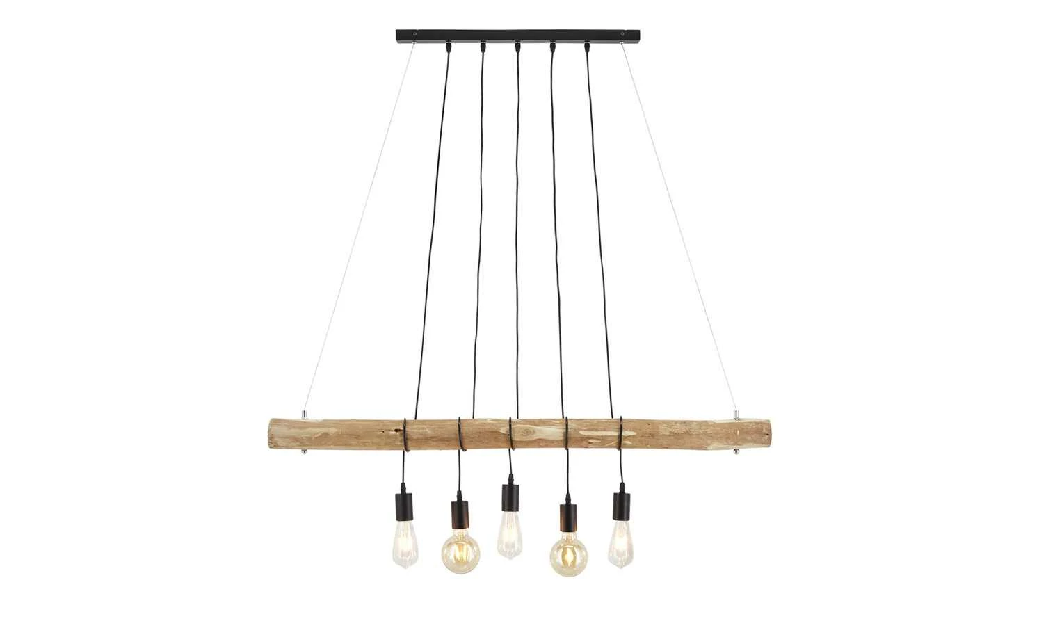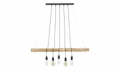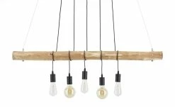 Diese charakterstarke Pendelleuchte wurde vom innovativem Familienunternehmen Paul Neuhaus designt. Gleich fünf Lampenfassungen hängen mit etwas Abstand zueinander von einem Holzstück aus bearbeitetem Eukalyptusholz. Dadurch wirkt die Pendelleuchte nicht nur natürlich, sondern erhält auch einen leicht maritimen Touch.
