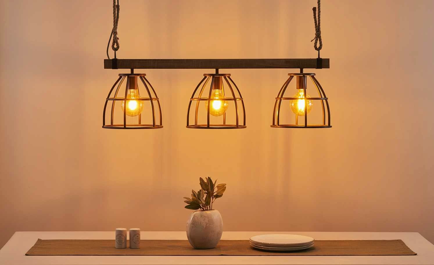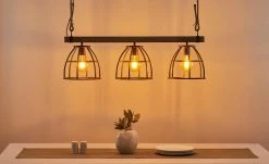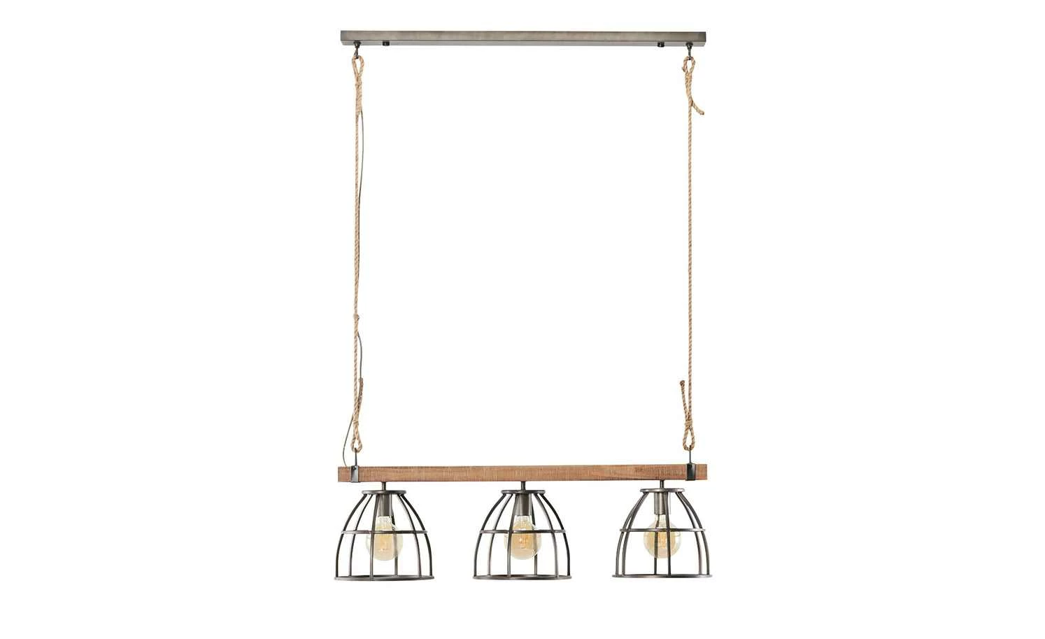 Pendelleuchte, 3-flammig, Metall / Holz schwarz