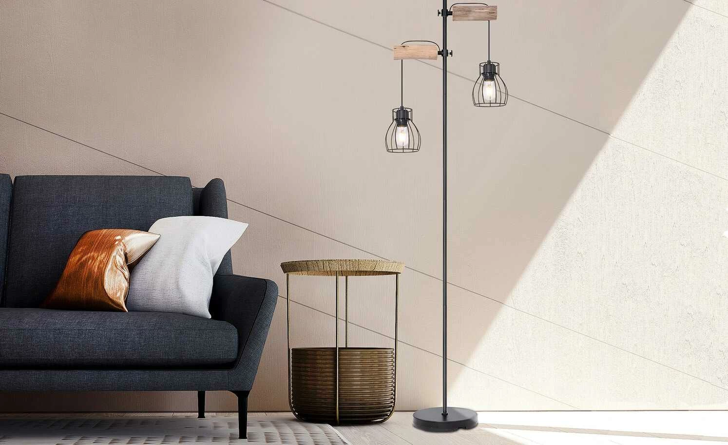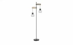 Stehleuchte 2-flammig, Holz/ Metall Korb
