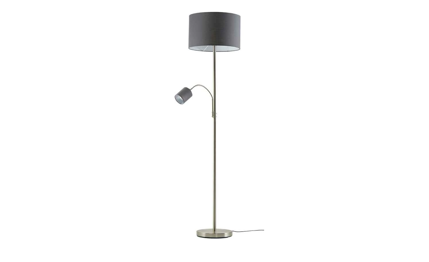 Trio Stehleuchte, 2-flammig, nickel matt, Stoffschirm grau