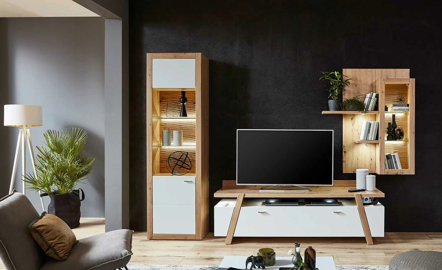 - nicht im Lieferumfang enthalten: Wohnwand