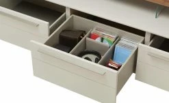 - Lieferumfang / mitgeliefertes Zubehör: 3x Vollauszug für 50 cm tiefe Schubkästen, Elektrostaufach mit Funkfernbedienung, LED-Einbaustrahler, 2,6 Watt für Hängeelement, Organisationseinteilung, LED-Beleuchtung, 5,1 Watt für TV-Brücke, LED-Vorschaltgerät, max. 15 Watt mit Fußschalter
